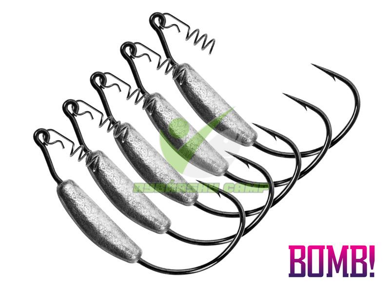 Háčik BOMB! HeavyShank Vám umožní lov aj na tých najzarastenejších vodách z množstvom prekážok. Unikátny systém nastraženia nástrahy Vám uľahčí skrutka pripevnená k očku háčika, do ktorej len jednoducho navŕtate umelú nástrahu ktorú následne prepichnete háčikom. Špeciálny tvar háčika Vám umožní schovať hrot tak, aby ste nezachytili žiadnu prekážku alebo nečistotu vo vode, ale zároveň v kombinácii s mäkkou nástrahou umožní zaseknúť rybu bez akýchkoľvek problémov. Umiestnenie závažia na háčiku je dôkladne vymerané kvôli ideálnemu chodu vašej nástrahy. Pre zvolenie ideálnej zbrane v našej ponuke nájdete paletu kombinácií závaží a veľkosti háčikov.